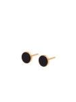 Classic gold-plated stud earrings with a dark, almost black stone set in a smooth, minimalist setting are a perfect foundation for a capsule wardrobe. They truly go with everything and are exceptionally comfortable to wear. If you are looking for a reliable jewelry essential — these earrings are designed for you.