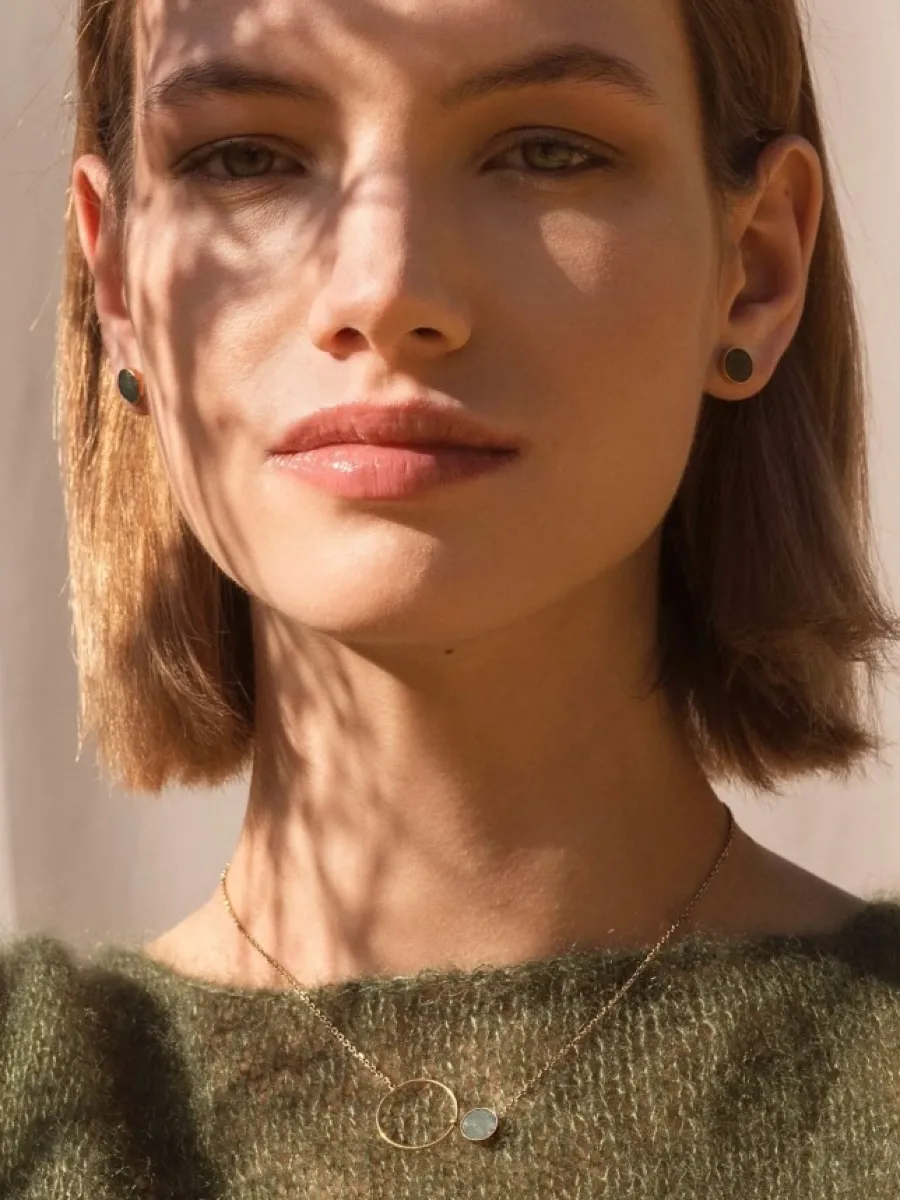 Gold stud earrings with green nephrite – timeless solid gold design
