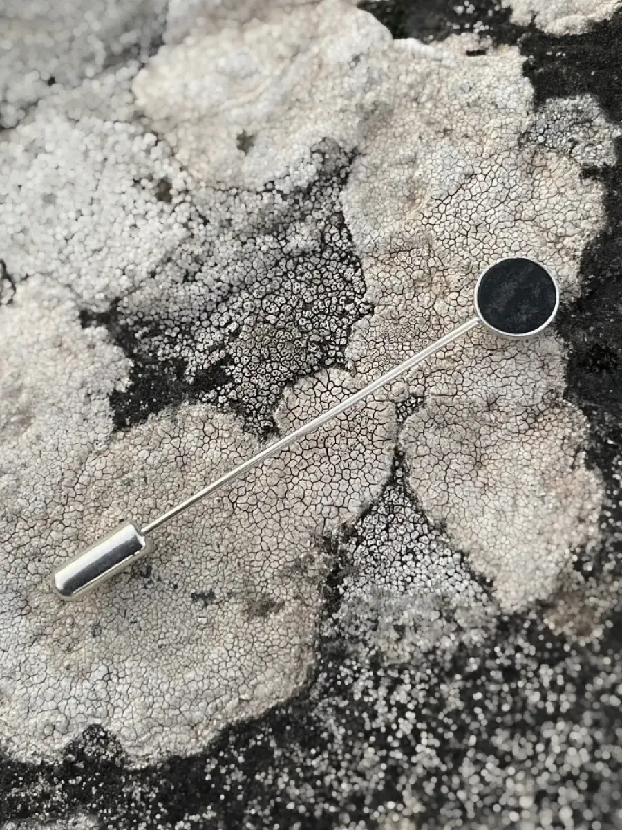 Sterling silver pin with loellingite – elegance redefined