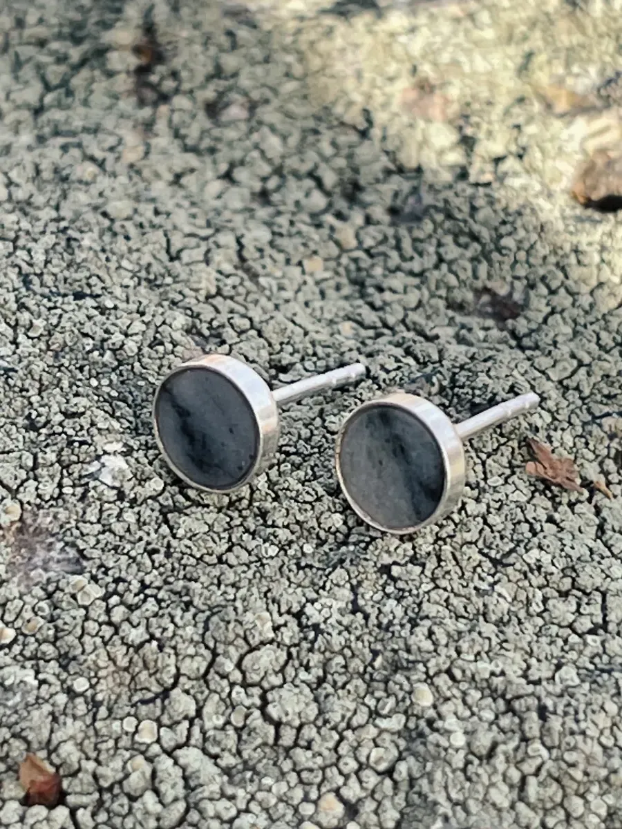 Petite Grey Picasso Dolomite Stud Earrings in Sterling Silver