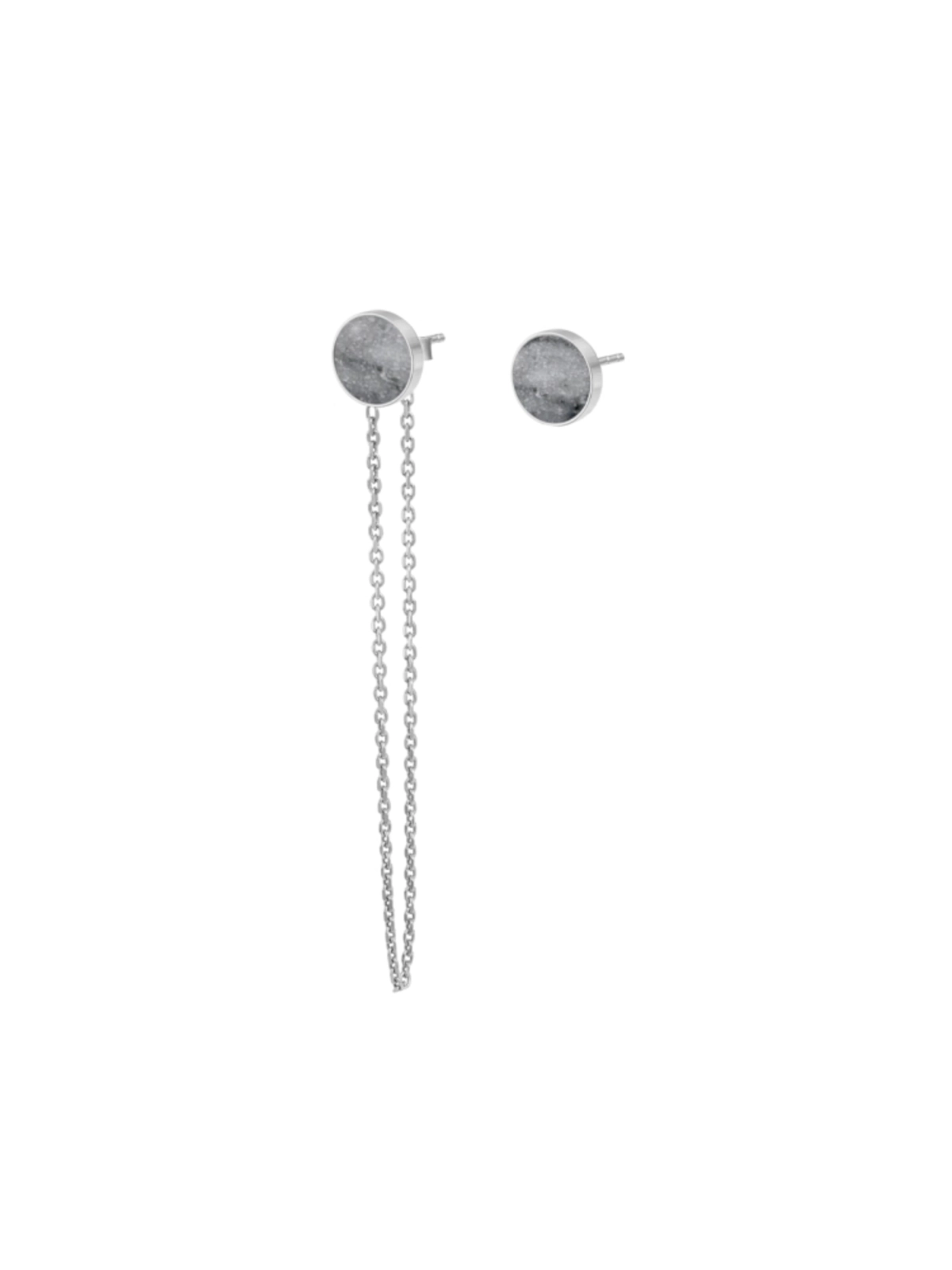 A fresh interpretation of a classic form. These asymmetric silver earrings with dolomite Picasso create a subtle design contrast – one earring is finished with a delicate chain, forming a composition that draws the eye without overpowering your look.