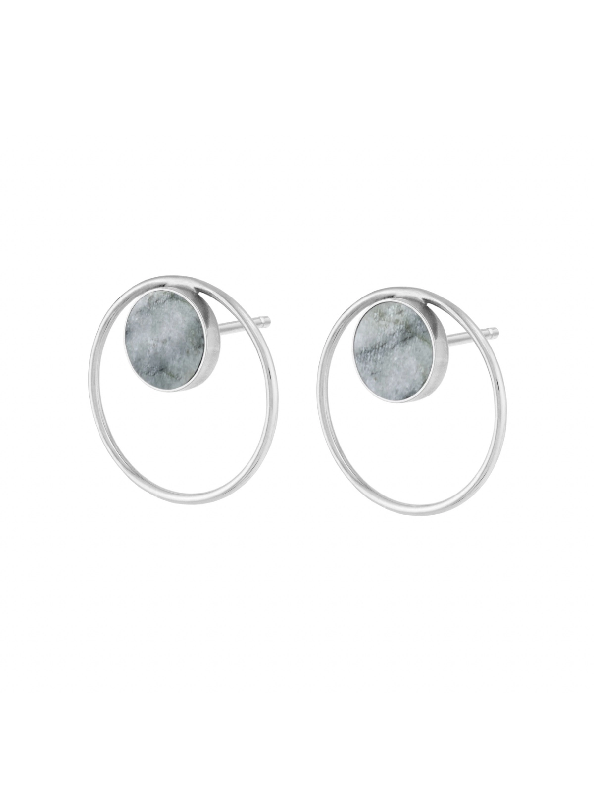 Lightweight yet distinctive, the circular silhouette frames the gray stone beautifully. Pair them with a simple turtleneck or a clean-cut dress to introduce rhythm and depth to your styling.